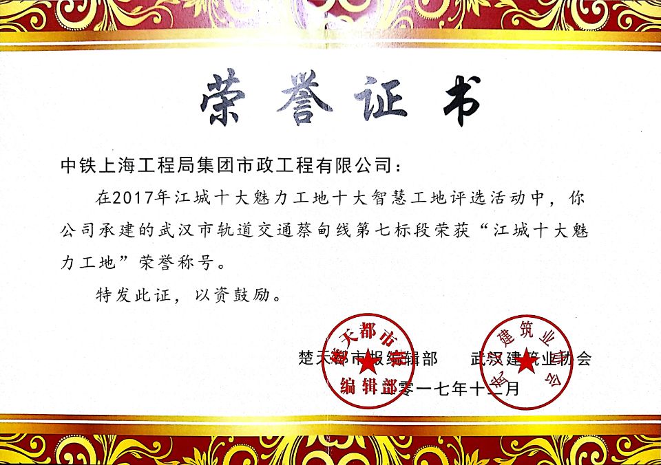 1月7日,江城“十大魅力工地”“十大智慧工地”頒獎儀式在武漢市楚天傳媒大廈楚天會堂隆重舉行。由市政公司承建的武漢市軌道交通蔡甸線第七標(biāo)段項(xiàng)目喜獲“十大魅力工地”稱號,這也是中鐵上海局自進(jìn)入武漢市場以來首次獲得該項(xiàng)榮譽(yù)。...