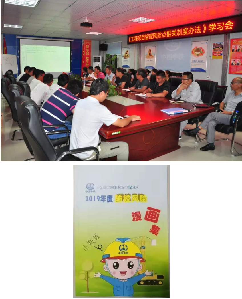 在深入推進風險防控過程中,針對10項風險19個風險點進行排查,以“一表兩單三報告”為主線,重點抓好管理風險點年度排查和每月風險防控情況自查工作。同時,每月支委會認真聽取各班子成員的風險防控檢查情況報告,及時研究部署具體風險點的防控措施和責任分工,確保將已發現風險隱患全部整改消除,持續鞏固防控風險工作成果。此外,項目黨支部印刷了風險防控漫畫和宣傳展板,以妙趣橫生的畫面和發人深省的對話,引導員工理解風險點,掌握防控措施,推動制度落地生根;還積極開展了黨風廉政建設主題活動,簽訂廉潔責任狀及廉潔承諾,共筑廉潔風險防線,營造了項目風清氣正的廉潔工作氛圍。