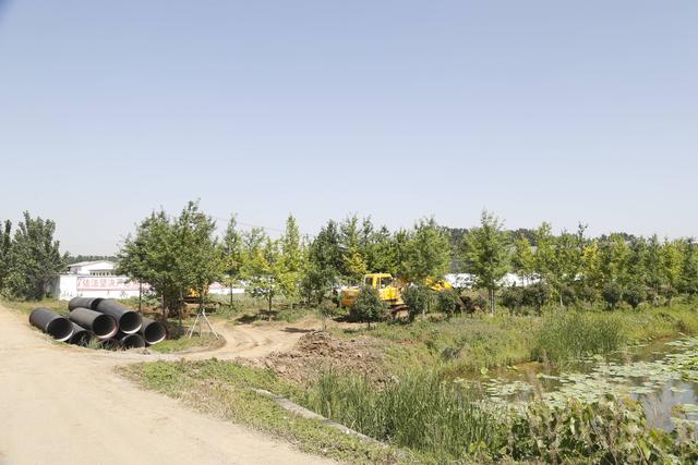 5月19日,在省道270戴圩段西側的施工現場,施工人員正在進行管道鋪設。在這段長達6公里的施工面上,種植著3排紅楓樹,每排大約有1200多棵。如果按照原有規定施工,三排樹苗均要進行移出。為了減少對綠植的破壞,施工方將20米的作業面縮減至9到10米,這樣只需移出一排樹苗即可。
