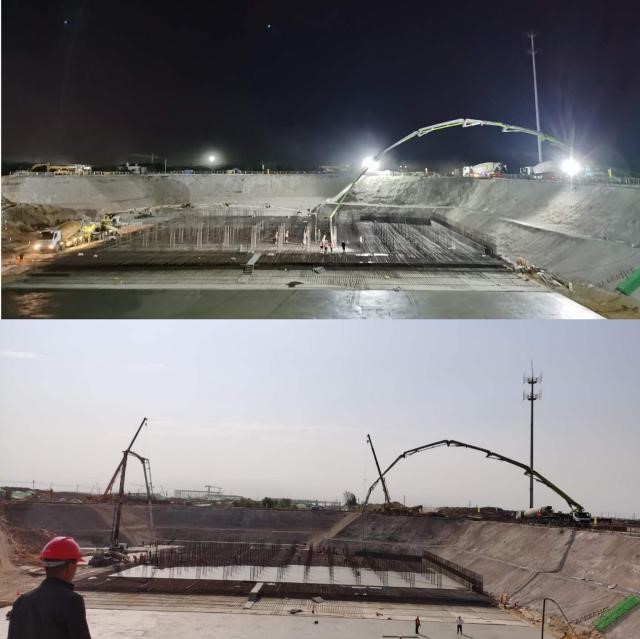 近日,公司承建的寶馬第三工廠2#雨水泵站及配套管線工程泵房四區底板混凝土順利澆筑完成。泵房是寶馬第三工廠2#雨水泵站最大的一個功能單體工程,東西長128.4米、南北寬99.8米、底板厚1米~1.5米、池體高度7.7米~16.7米。自今年開工以來,泵房基坑一直受政府拆遷進度影響而無法形成施工作業面,項目部多措并舉,現場陸續打開工作面,確保工期節點完成。一是項目部不等不靠、主動出擊,積極與建設單位及政府拆遷部門溝通,加快征地拆遷速度。二是根據現場實際情況,項目部合理部署,重新確定分區施工順序,確保現場物資供應、加工場地和施工生產有機結合,并做好動態調整控制。三是強化技術管理,泵房屬于深基坑開挖,在基坑開挖過程中嚴格按照設計圖紙施工,基坑開挖完成后加強監測,優化構筑物結構施工方案及大體積混凝土專項施工方案,保證泵房結構施工質量可控。