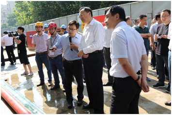 9月18日,南京市市長繆瑞林蒞臨公司承建的南京城東污水處理廠三期污水管道清疏工程檢查指導(dǎo)工作。市委常委、江寧區(qū)委書記李世貴,副市長華靜、謝志成,市建委、環(huán)保局、水務(wù)局及各區(qū)主要領(lǐng)導(dǎo)、城建集團(tuán)領(lǐng)導(dǎo)陪同。繆瑞林一行聽取了工程施工方案、安全管控、施工進(jìn)度以及施工困難等情況匯報,實地查看了工程進(jìn)展情況。繆瑞林指出,市委、市政府對水污染防治工作高度重視,實施水污染防治工作行動計劃、持續(xù)改善水環(huán)境質(zhì)量,不僅是貫徹新發(fā)展理念的重要舉措,是生態(tài)文明建設(shè)的本質(zhì)要求,更是廣大市民百姓的迫切期盼。各區(qū)各部門要按照市委、市政府部署要求,加快組織實施,務(wù)實有力推進(jìn),以水環(huán)境改善實際成效兌現(xiàn)對市民百姓的承諾。