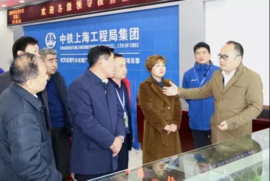 37日,河南省人大財經委副主任劉建功一行來到由中鐵上海工程局集團市政公司承建的北湖污水廠項目調研。